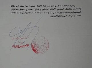 « Nous venons de recevoir un courrier signé par le secrétaire général du ministère de l’Intérieur. La missive en question se termine par des menaces explicites de dissolution du RCD », a écrit Mohcine Bélabas sur sa page Facebook.