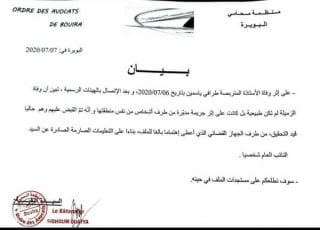 Le communiqué indique qu ‘ »après avoir contacté les autorités compétentes, il a été constaté que la mort de l’avocate n’était pas normale, mais résultait plutôt d’un crime orchestré par des personnes de la même région que la défunte ».