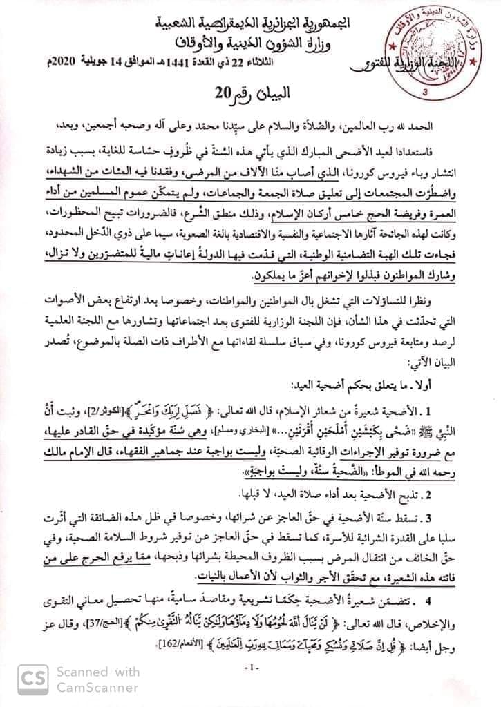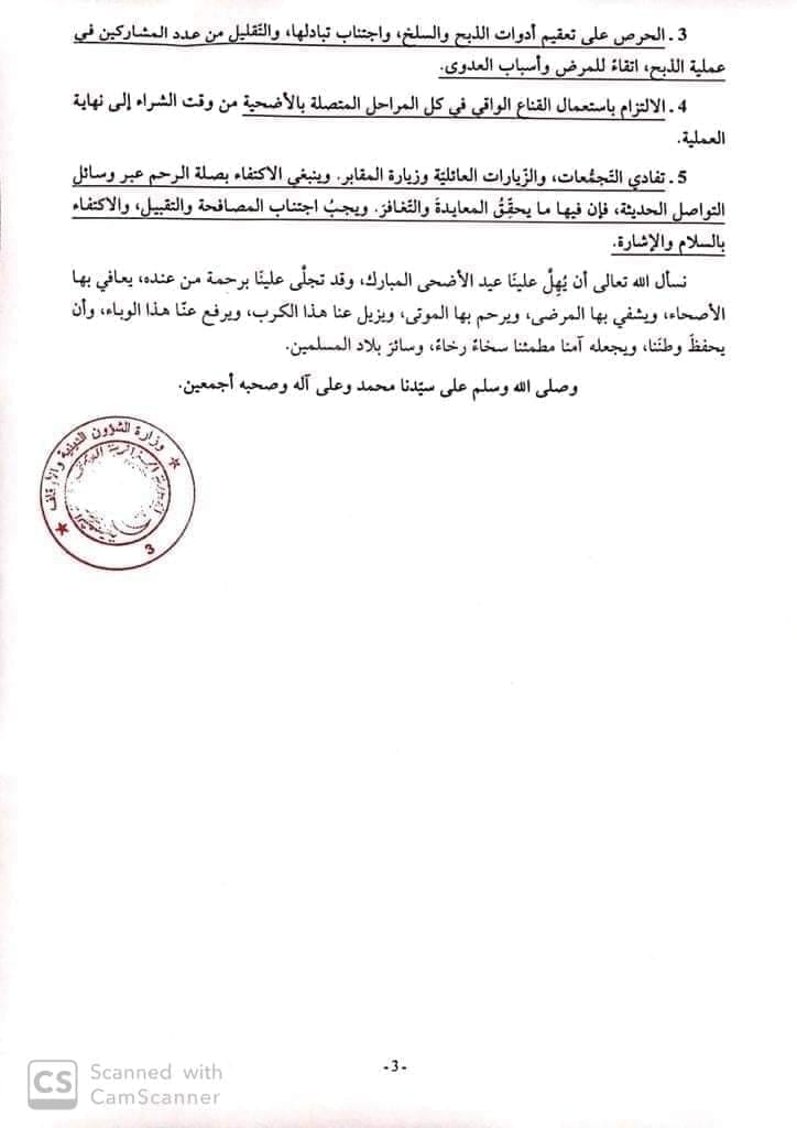 En effet, la commission de la fatwa a décidé d’autoriser le sacrifice de l’Aïd El Adha, mais en respectant les mesures de prévention contre le coronavirus.