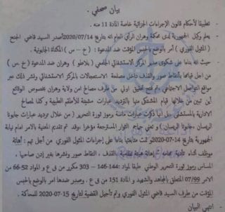 La Cour d’Oran a publié aujourd’hui, mercredi, un communiqué par lequel elle a dévoilé les détails de l’arrestation de la chanteuse « Siham Japonia », ainsi que les chefs d’inculpation , après la « vidéo » qu’elle a photographiée à l’hôpital d’Oran à travers laquelle elle s’est déchaînée contre l’absence de personnel.