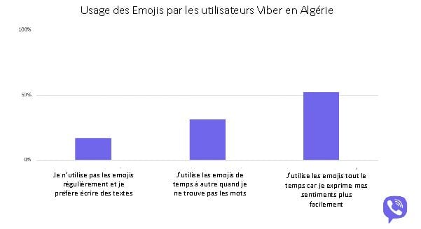 Un sondage auprès de plus de 7 000 utilisateurs algériens a révélé que seulement 14% préfèrent exprimer leurs opinions et leurs sentiments à travers du texte et des mots plutôt que d’utiliser des emojis, tandis que 28% des Algériens utilisent parfois des emojis lorsqu’ils ne trouvent pas les bons mots pour s’exprimer dans les messages. Anna Znamenskaya, Directrice du développement de Rakuten Viber, a confirmé que l’engagement de Rakuten Viber permettra aux utilisateurs de s’exprimer de la manière la plus précise possible et dira « La possibilité d’aimer » en utilisant le « cœur » comme un emoji peut ne pas inclure le large éventail d’émotions et de sentiments qu’une personne peut ressentir en lisant le message, nous devons donc ajouter un ensemble plus large d’émojis à travers lesquels les utilisateurs peuvent interagir. De la manière la plus appropriée. »