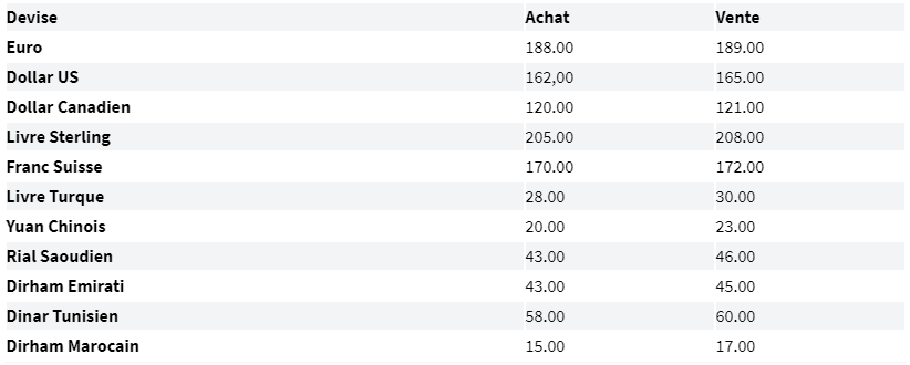 Ces taux sont valables pour les opérations commerciales avec l’étranger, à savoir l’importation et l’exportation des biens et des services.