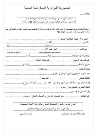 Le dossier pour bénéficier de l’octroi de 03 millions de centimes pour les professionnels des petits métiers comprend: une copie de la carte d’artisan + la carte originale, en plus d’une copie de la carte d’identité nationale + la carte originale, en plus d’un chèque postal barré, et le remplissage du formulaire, et la présence de l’intéressé lors du dépôt du dossier est obligatoire.