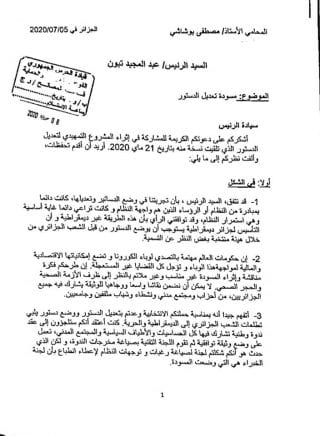 « Avec le contenu proposé, je ne pense pas que vous parviendrez à instaurer une nouvelle Algérie, l’Algérie de la démocratie et de la liberté, pour laquelle ont sorti les Algériens le 22 février 2010 », a écrit l’avocat à l’adresse du chef de l’État.