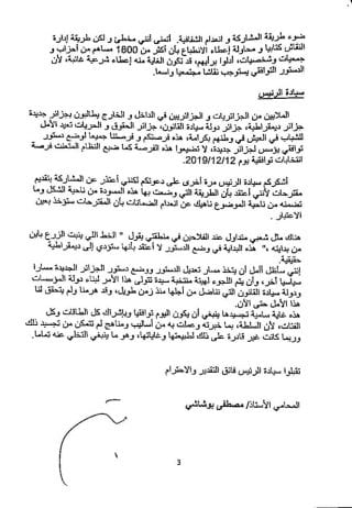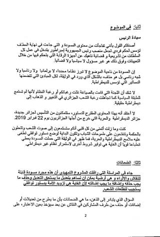 Le militant des droits de l’homme a également critiqué, toujours dans la forme, le timing choisi pour la révision constitutionnelle, coïncidant avec la propagation de l’épidémie du coronavirus. De surcroit, Me Bouchachi a déclaré à l’adresse du chef de l’État « j’avais pensé que vous feriez recours à des consultations regroupant toutes les parties de la sphère politique et de la société civile … mais ce qui s’est passé, c’est que vous avez créé une commission qui a rédigé les aspirations et les orientations du régime ».
