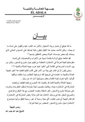 « Nous avons consulté aujourd’hui, sur le site de la présidence, la liste des partis et des personnalités qui ont donné leurs propositions à la commission Laraba … parmi eux figure le Front pour la justice et le développement », lit-on dans le communiqué.
