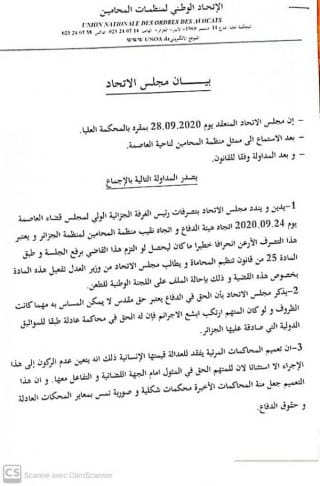 L’UNOA a tenu également à rappeler que « le droit à la défense est un droit sacré, en toutes circonstances, et même si que le prévenu a commis les plus atroces des crimes… ». L’Union a également exprimé sa « solidarité avec le barreau d’Alger ».