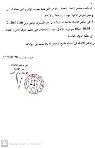 En outre, l’organisation a annoncé le « boycott de l’activité judiciaire au niveau national, les 30 septembre et 1er octobre 2020 ».