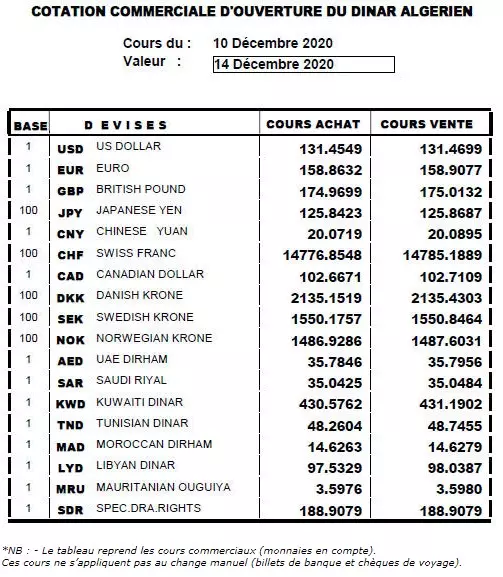 De son côté, le dollar américain a également enregistré une tendance haussière sur le marché officiel, avec 131,46 dinars à la vente et à 131,45 dinars à l’achat.