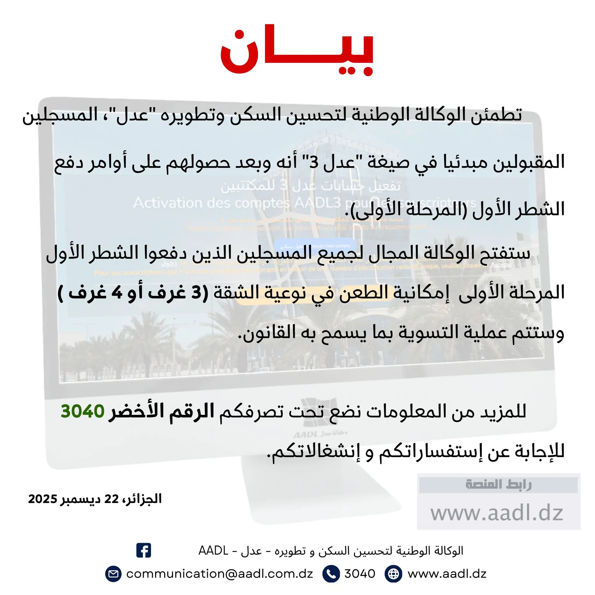 🟢 À LIRE AUSSI : AADL 3 : quelles sont les difficultés signalées dans l’envoi des ordres de paiement ?