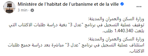 Le Ministère de l’Habitat, de l’Urbanisme et de la Ville a publié un communiqué crucial ce vendredi, annonçant la suspension temporaire des inscriptions au programme de logements « AADL 3″. Cette décision vise à permettre une évaluation rigoureuse des demandes d’adhésion qui ont afflué depuis l’ouverture de la plateforme.