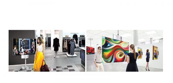 Si minces et si légers et à cadres ouverts, qu’ils peuvent être roulés, pliés, suspendus au plafond, accrochés au mur ou placés sur un support au sol et prendre des formes impossibles auparavant avec des affichages traditionnels.