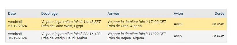 L’avion a ensuite redécollé du Caire à 14h30 (heure locale) et a finalement atterri à Oran vers 17h30.