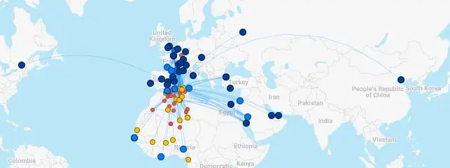 Europe : Paris (France), Marseille (France), Lyon (France), Londres (Royaume-Uni), Madrid (Espagne), Barcelone (Espagne), Rome (Italie), Milan (Italie), Genève (Suisse), Zurich (Suisse), Francfort (Allemagne), Munich (Allemagne), Bruxelles (Belgique), Vienne (Autriche), Moscou (Russie), Belgrade (Serbie), Prague (République tchèque), Budapest (Hongrie), Stockholm (Suède), Oslo (Norvège), Copenhague (Danemark), Helsinki (Finlande), Amsterdam (Pays-Bas), Lisbonne (Portugal), Athènes (Grèce), Istanbul (Turquie).