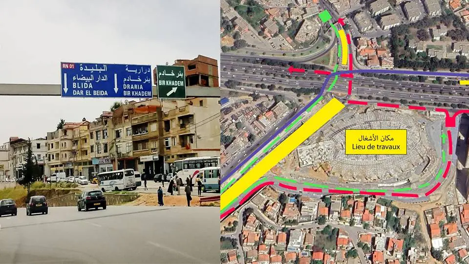 Pour ceux voyageant de Dar El Beïda et de Bir Mourad Raïs vers Blida, la circulation sera uniquement assurée en surface via le carrefour sous le pont de la rocade Sud « La Côte » Bir Mourad Raïs pour s’orienter vers Blida (les deux trémies seront fermées).