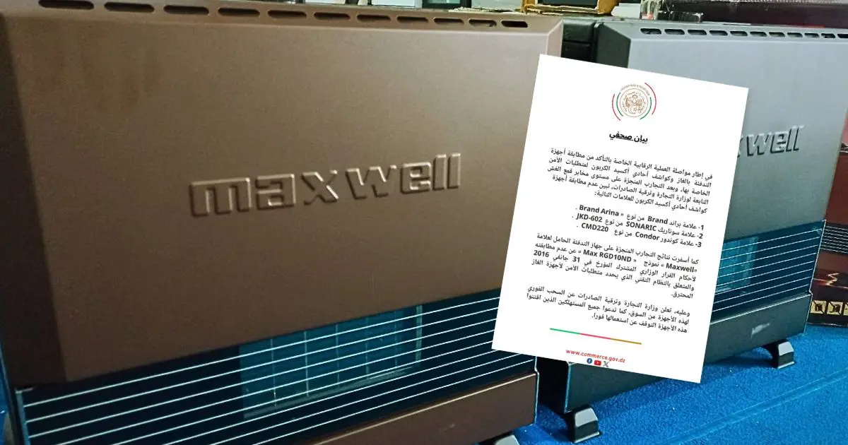 Cette décision s’inscrit, comme l’indique le communiqué du ministère, dans le cadre du processus visant à garantir que les appareils de chauffage au gaz et les détecteurs de monoxyde de carbone soient conformes aux normes et exigences de sécurité.