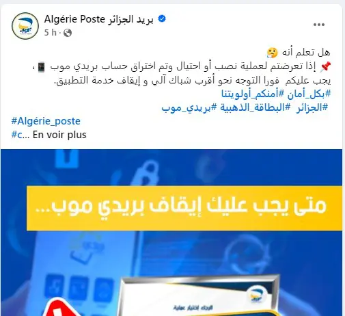 🟢 À LIRE AUSSI : Algérie Poste met en garde contre la divulgation de ces informations sensibles