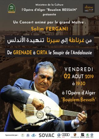 Le deuxième concert intitulé « de Grenade à Cirta, le soupir le l’Andalousie » qu’animera Salim FERGANI se tiendra le vendredi 02 Août 2019 à 19h30.