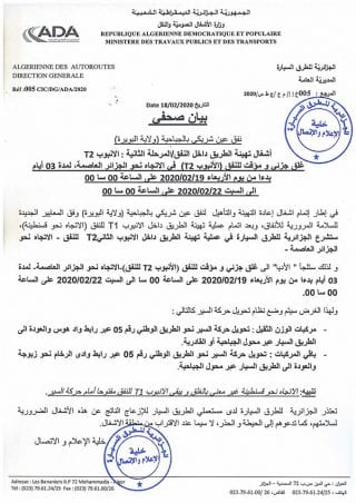 A noter que cette fermeture, coïncide avec le 1er anniversaire du mouvement populaire et elle compliquera la tâche aux Hirakistes souhaitant se déplacer à Alger.