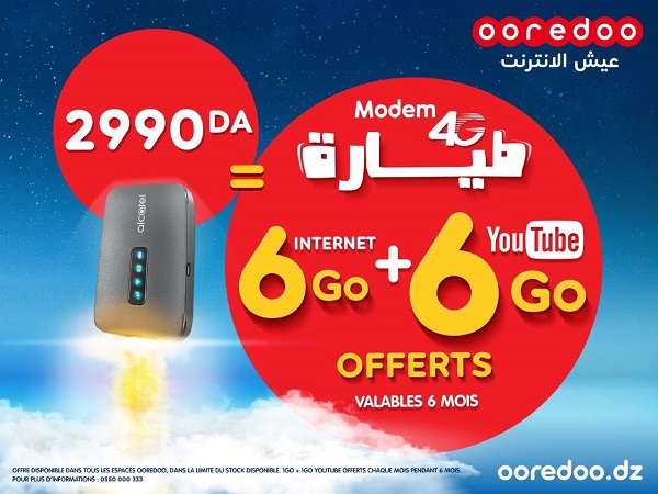 - Sim N’ternet + Modem 4G : disponible pour le prix de 2990 DA avec 1 Go d’Internet et 1 Go de YouTube offerts (chaque mois pendant 6 mois).