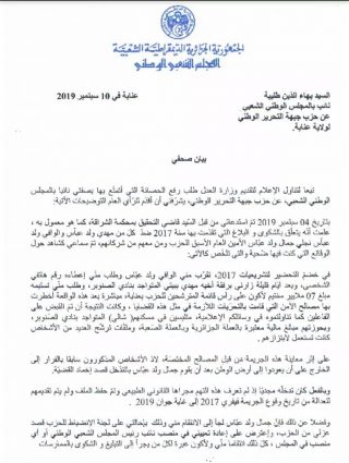 - Communiqué de Bahaeddine Tliba