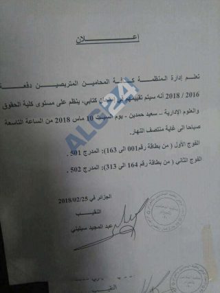 ![Le Bâtonnier d’Alger remet en cause les diplômes des nouveaux avocats [Document]](https://www.algerie360.com/wp-content/uploads/2018/02/Bâttonier-dAlger-1.png?x69654)