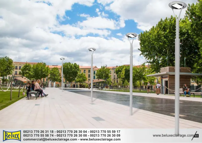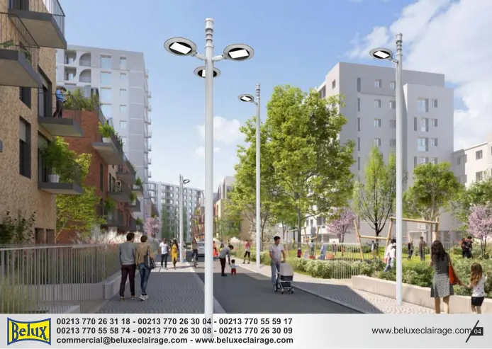 Belux Éclairage propose, dans la collection Djazair El Jadida, une variété de mâts d’éclairage adaptés à différents environnements urbains :