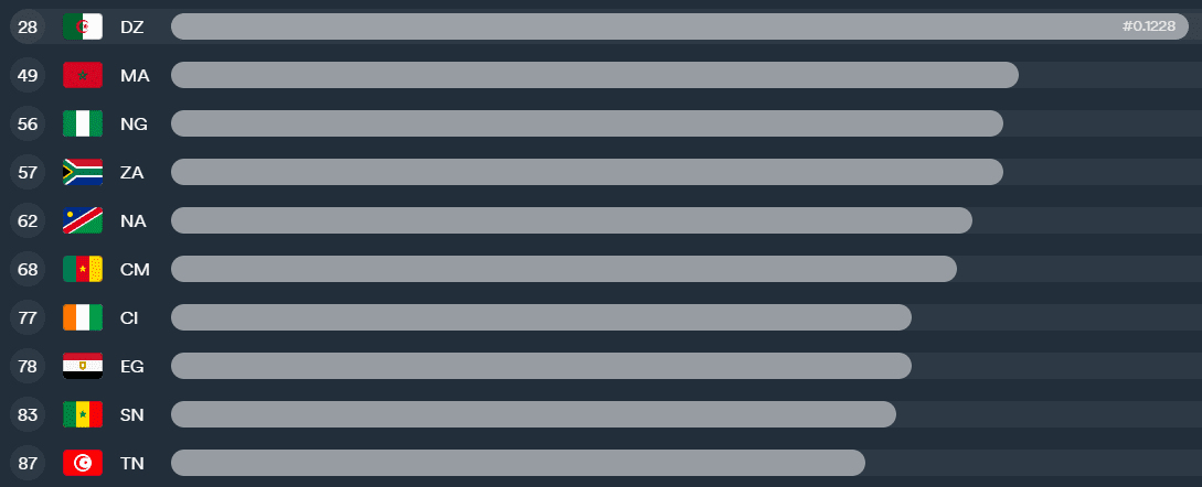 7. Algérie : 7e en Afrique et 86e dans le monde.