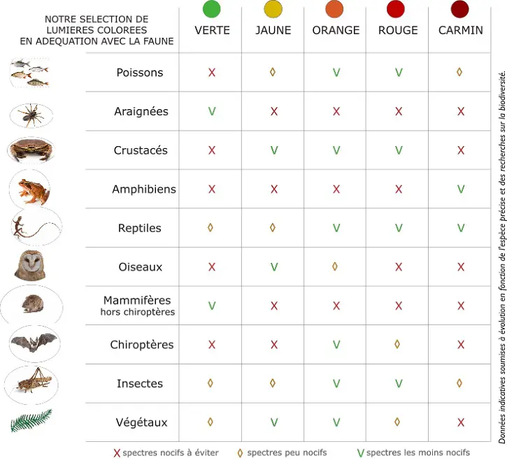 En effet, lorsque dans un projet d’éclairage, on ne choisit pas les couleurs et les tonalités avec soin, la lumière projetée peut nuire gravement à nombre d’espèces animales ; et pour certaines, celles-ci peuvent même s’avérer létales.