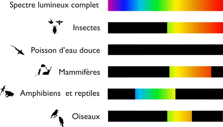 Comment les différentes espèces animales réagissent-elles aux spectres lumineux ?