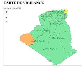 L’office national de météorologie place quatre wilayas en vigilance jaune orage: « Des pluies parfois sous forme de fortes averses orageuses affecteront ainsi les wilayas d’Annaba, Guelma, Souk Ahras et El-Tarf. Ces pluies s’abattront sur l’Est du pays durant l’après-midi de 11h jusqu’à 17h ».