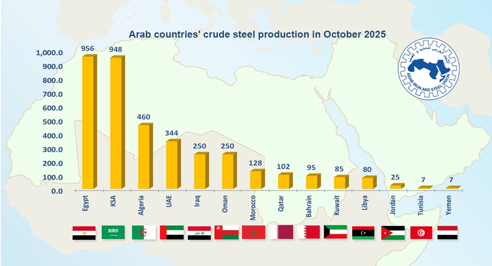 Le secteur de l’acier a globalement montré une tendance à la hausse, enregistrant une croissance de 7,2 % par rapport à l’année précédente sur les 10 premiers mois de 2025, ce qui reflète le rôle croissant des pays arabes sur le marché mondial de l’industrie sidérurgique.