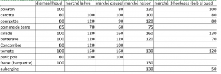 Les prix des fruits et légumes affichés aujourd’hui au niveau de quatre marchés de la capitale, à savoir le marché Djamaa Lihoud, marché La Lyre, marché Clauzel, marché Nelson et le marché Trois Horloges à Beb El Oued.