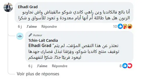 Face aux interrogations, le groupe Tchin Lait, qui produit le fameux Candy Choco, n’a publié aucun communiqué officiel. Toutefois, sur sa page Facebook, une réponse a été apportée dans les commentaires à un commerçant qui demandait des explications pour pouvoir informer ses clients :