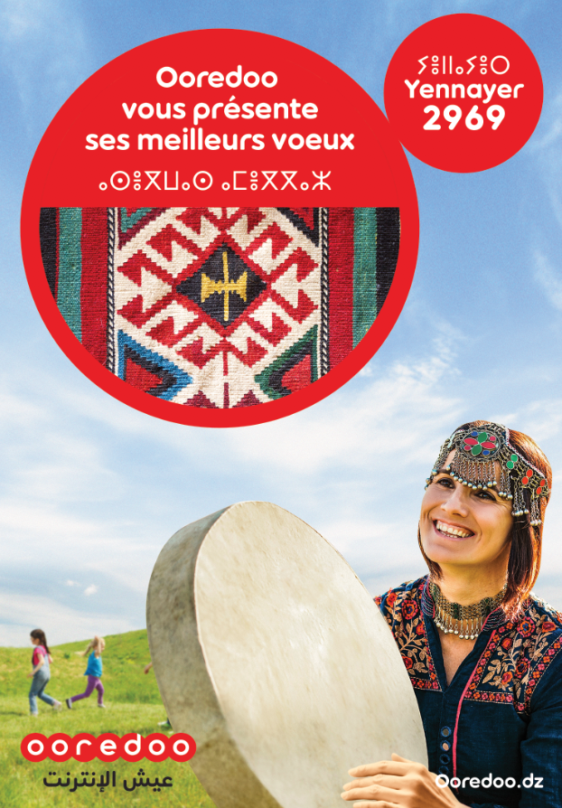 A l’occasion du nouvel an amazigh 2969, Ooredoo, entreprise citoyenne par excellence, présente ses vœux de santé, de paix et de prospérité au peuple algérien et à ses clients et leur souhaite « Asseggas Ameggaz »