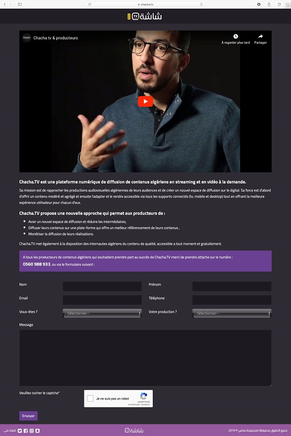 Ainsi, les initiateurs du projet, lancent un appel à tous les producteurs de contenus algériens qui souhaitent prendre part au succès de Chacha.TV de prendre attache sur le site www.chacha.tv/contact
