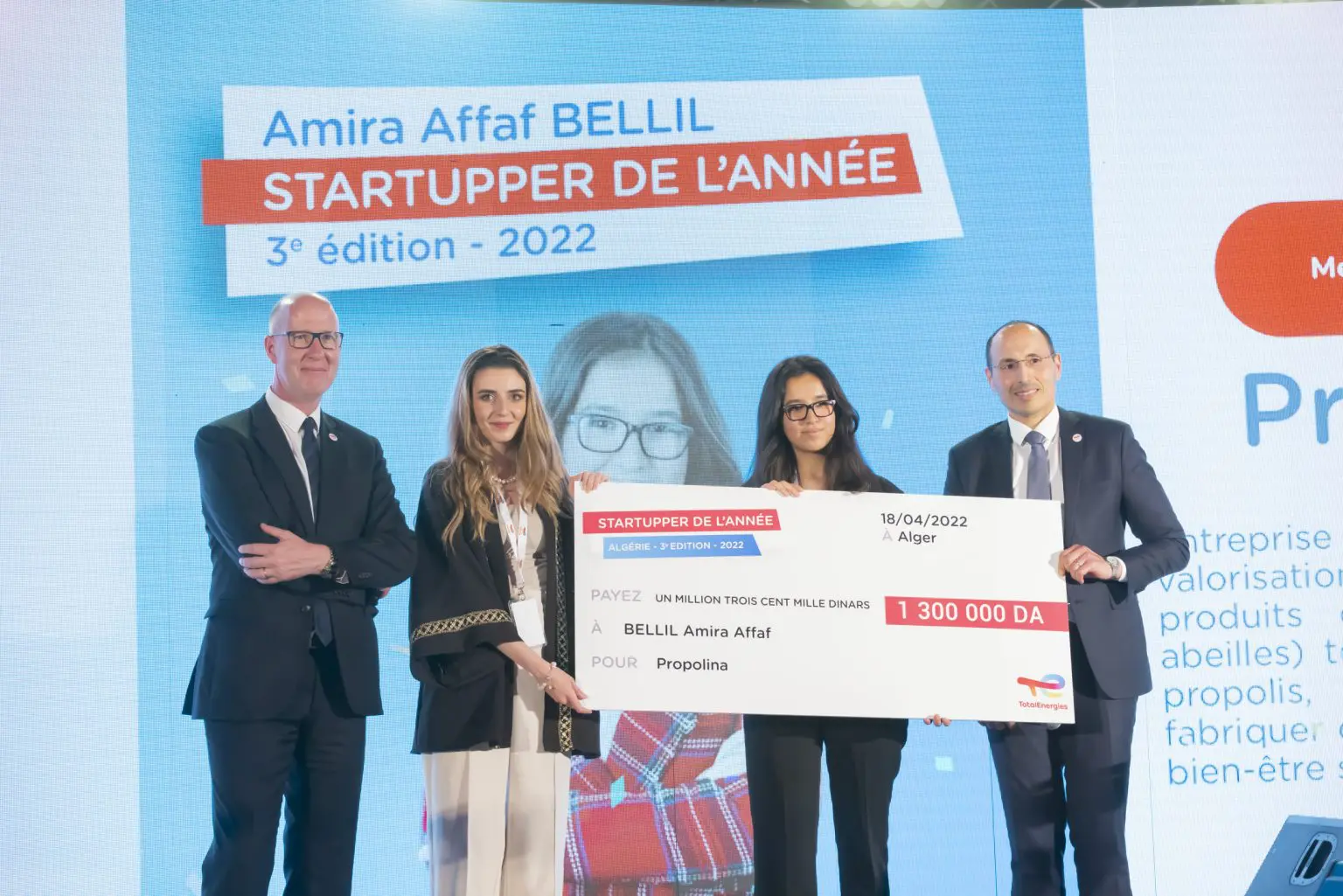 – Amira Affaf BELLIL pour le prix de la meilleure entrepreneuse avec « Propolina » : entreprise spécialisée dans la valorisation et la transformation des produits de la ruche (trésors des abeilles) tels que le miel, le pollen, la propolis, la cire d’abeille, afin de fabriquer des produits beauté, santé et bien-être sains et 100% naturels.