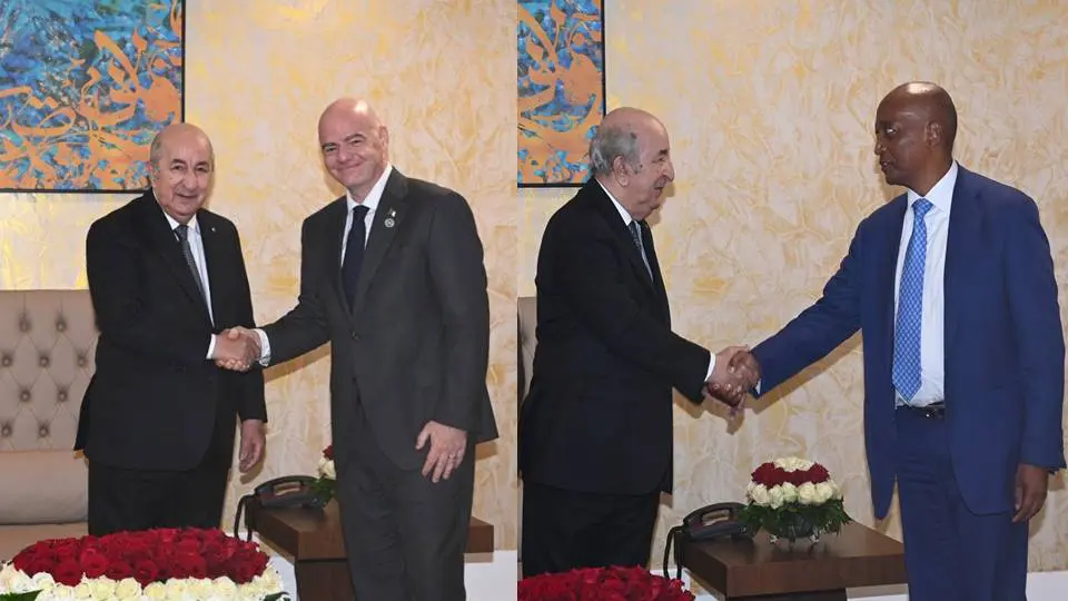 À la veille de l’ouverture de la 7ᵉ édition du Championnat d’Afrique des nations (CHAN 2022), le Président a reçu le président de la FIFA, Gianni Infantino, et le président de la CAF, Patrice Motsepe. Et ce, en présence du ministre de la Jeunesse et des Sports, Abderezzak Sebgag, du président de la Fédération algérienne de football (FAF), Djahid Zefizef, et du président du Comité olympique et sportif algérien (COA), Abderrahmane Hammad.