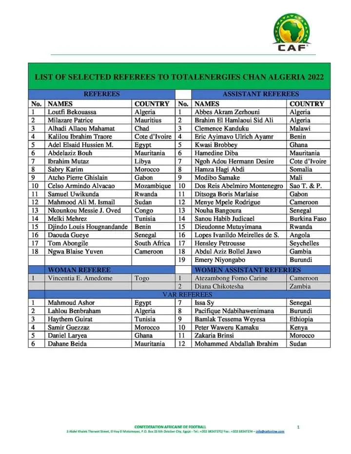 CHAN 2023 Algérie : Voici la liste complète des arbitres
