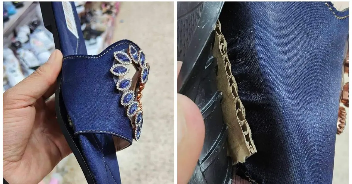 Dans l’optique de mettre en garde le consommateur contre la contrefaçon et les « arnaques », l’APOCE a publié des photos d’un produit algérien dont la qualité laisse à désirer dernièrement. Il s’agit d’une paire de mules en tissu pour femme. En testant le produit, l’acheteur se rend tout de suite compte que la qualité n’y était pas. D’un simple geste, il arrive à décoller la frêle semelle, laissant apparaître un rembourrage en… Carton ! L’APOCE, qui favorise la consommation locale, réagit en indiquant que ce type de marchandise ne mérite aucunement d’être commercialisé, encore moins d’être encouragé.