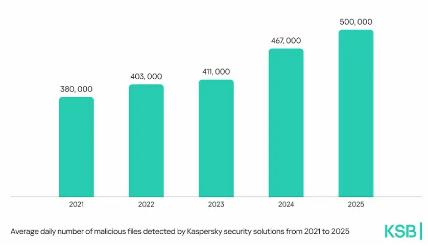 Le chiffre donne le vertige. En effet, en 2025, les systèmes de détection de Kaspersky ont identifié en moyenne un demi-million de malwares par jour, soit une hausse de 7 % par rapport à 2024. Cette progression traduit l’intensification et la diversification des cybermenaces qui ciblent aussi bien les particuliers que les organisations, dans un contexte de dépendance numérique accrue.