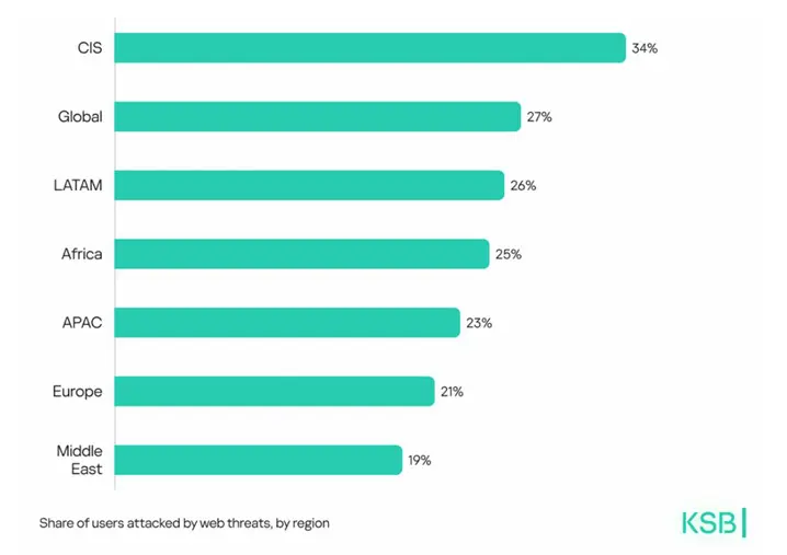 L’analyse régionale révèle une situation contrastée. En Afrique, Kaspersky observe entre 2024 et 2025 :