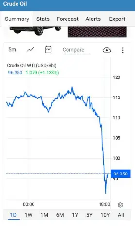 L’impact sur les places boursières ne s’est pas fait attendre. Selon les dernières données de trading, le Brent a lourdement chuté de 14,84 dollars, soit une baisse de 10,10 %, pour s’établir à 92,97 dollars le baril.
