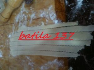 - sur un plan de travail saupoudré de maizena et de beurre, abaissez la pate d’amande et découper des bandelettes