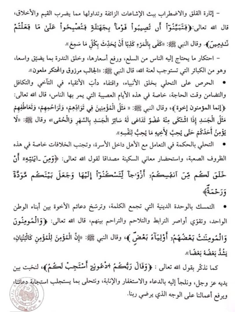 La commission ministérielle de la Fatwa a émis, ce mardi, une nouvelle Fatwa interdisant la spéculation et l’augmentation des prix des produits alimentaires.