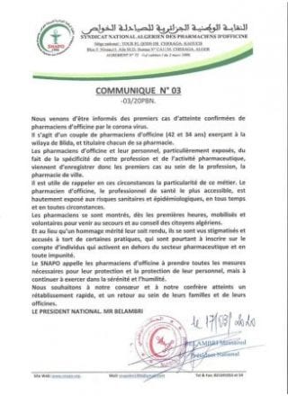 « Il s’agit d’un couple marié de pharmaciens d’officine, âgé de 42 et 34 ans, exerçant dans la wilaya de Blida , et titulaire chacun de sa pharmacie » ajoute le communiqué.