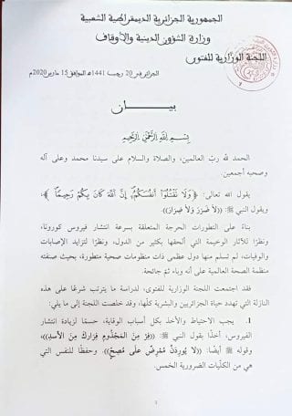 La commission ministérielle des Fatwas a tenu une réunion ce dimanche pour statuer sur les mesures à entreprendre quant à la propagation du coronavirus Covid-19.
