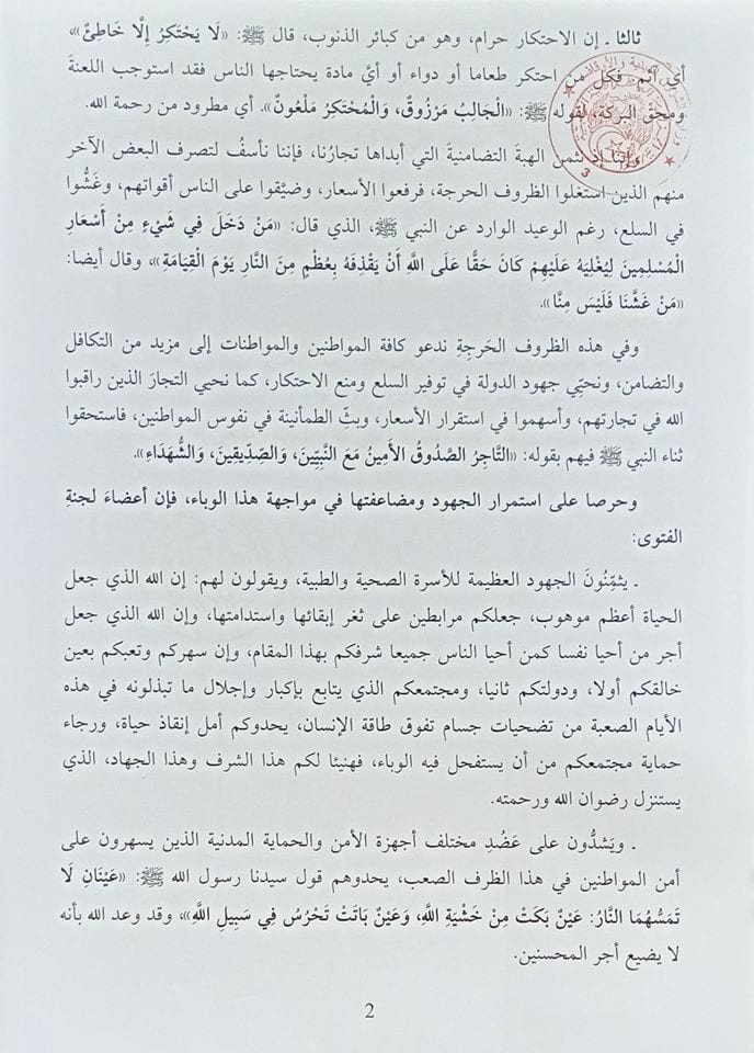 Enfin, la commission indique aussi qu’il est considéré Haram (péché) d’augmenter les prix des produits alimentaires, des médicaments ou de tout ce dont les gens ont besoin.