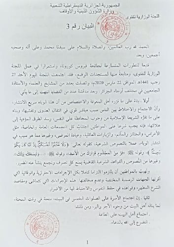 La commission ministérielle de la Fatwa demande aux algériens d’éviter les visites familiales, les visites des malades.