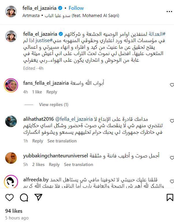 Ce n’est pas la première fois que Fella Ababsa évoque des complots visant à l’écarter de la scène artistique. Par le passé, elle avait déjà dénoncé des « manœuvres » orchestrées par ses détracteurs, sans toutefois fournir de preuves concrètes.